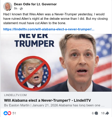 What will likely hurt Odle’s chances for Lieutenant Governor, however, is his arrogance, his attitude, and his unpolished performance. He behaves as if he’s Donald Trump 2.0—but love him or hate him, Trump is far more complex than just “a guy who acts like a bombastic jerk.”