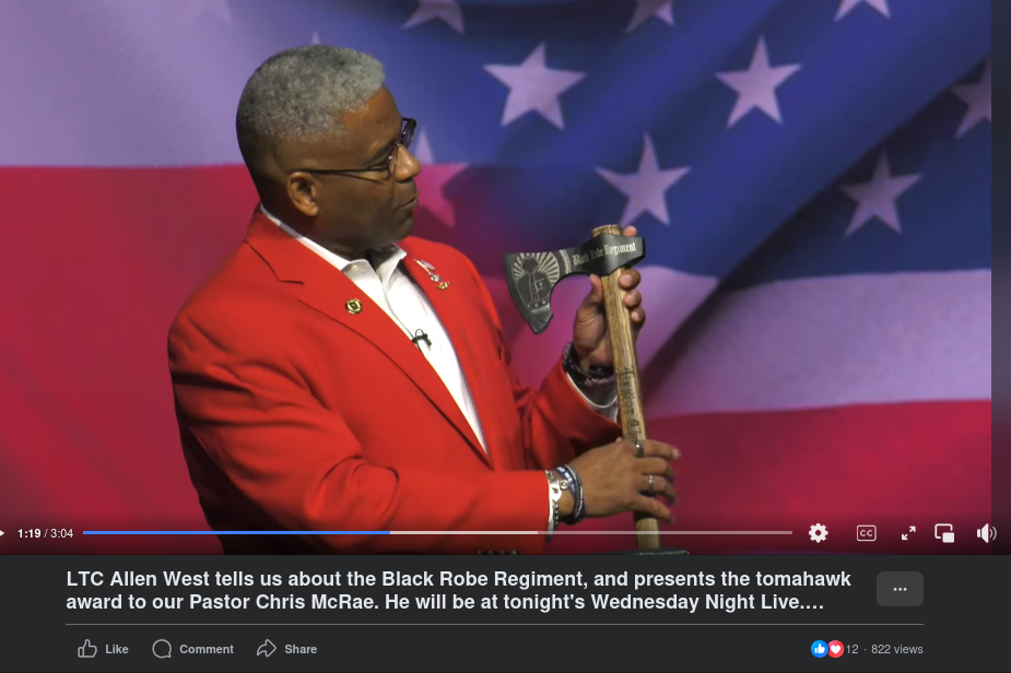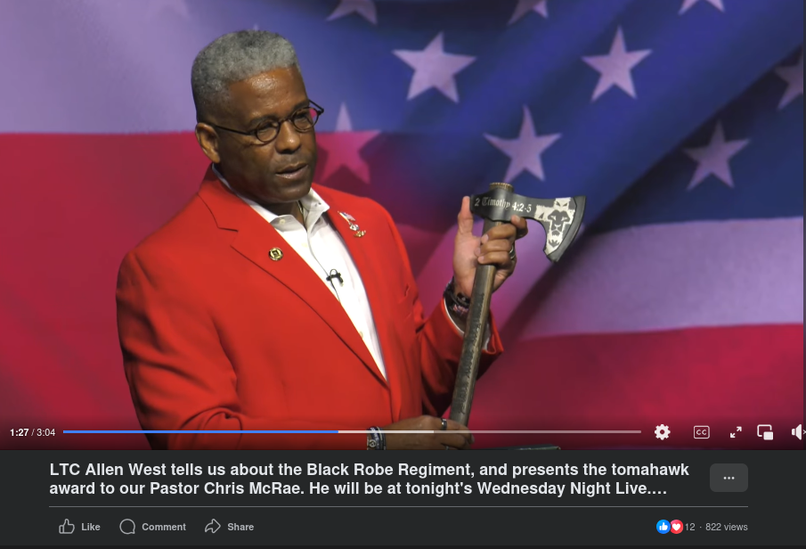 I was unable to find any evidence that LTC West actually presented that to him, unlike a few other pastors. That doesn't mean Odle lied, but I used Google, 5 AI engines, and found nobody other than Odle recounting that event. Here's a clear picture of what that tomahawk is supposed to look like, from a Facebook Video.