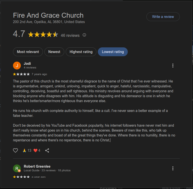 - BONUS Rev. Odle's church: Fire and Grace Church, Opelika.